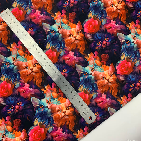 Floral Cats Print HydroReminisce™ Waterproof Luxury Fabric
