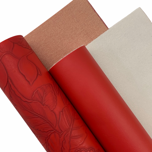 Lipstick Red “Embossed Tropics” Faux Leather Half Meter Rolls
