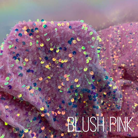 Blush Pink Sequin Velvet Four Way Stretch Fabric