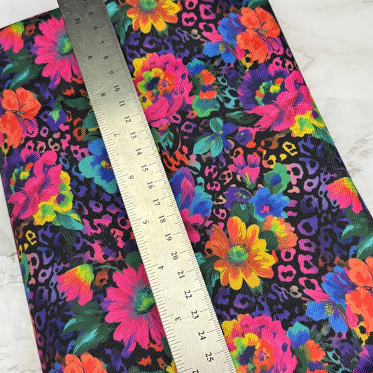 Neon Leopard Floral 600d Oxford Waterproof Polyester Canvas with PVC Backing H2ONoMo