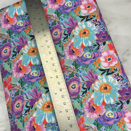 Summer Floral 600d Oxford Waterproof Polyester Canvas with PVC Backing H2ONoMo