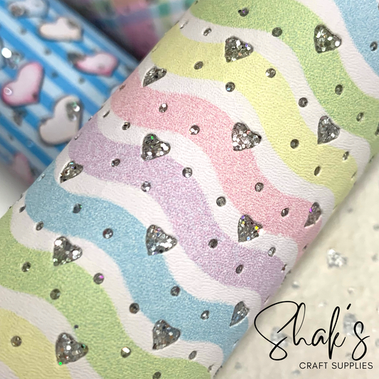 Glitter Embossed Hearts Printed Faux Leather Sheet